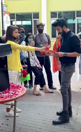 One of our classmates’ birthday was celebrated that day and my plan was to propose to Shehryar but Shehryar didn’t know it at all. Was it a surprise when I was on my knees. There were only our classmates but when I started to get up there was so much rush I didn’t realize it at that time but that evening our videos in our university group went viral.