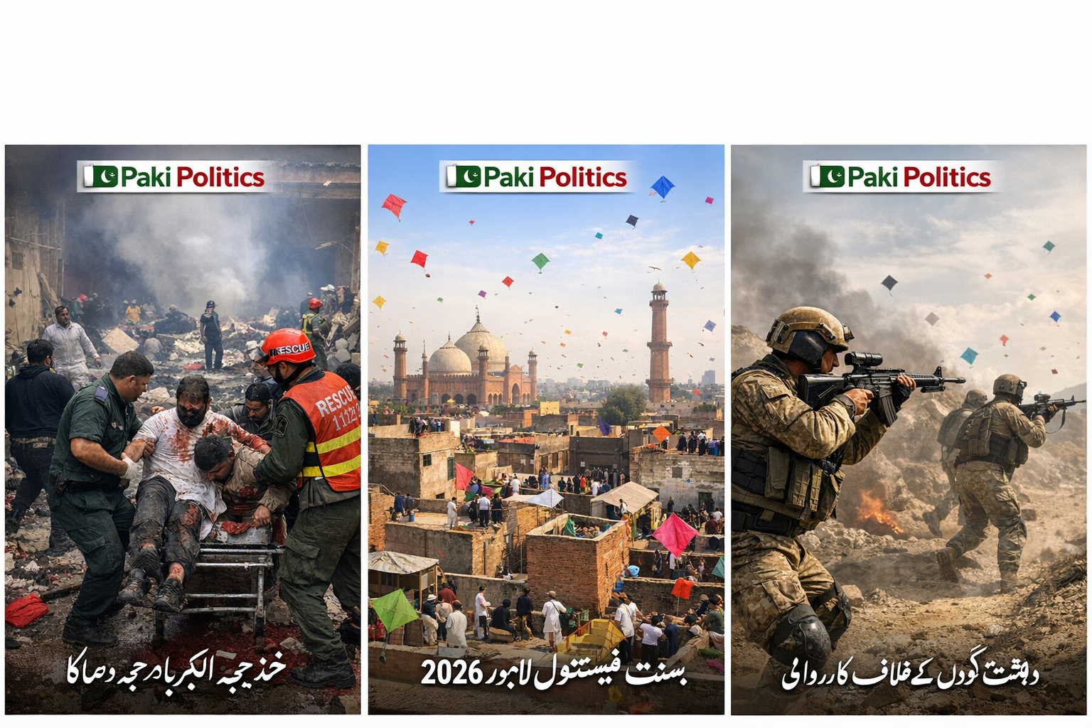 Today reflects a juxtaposition of tragedy and culture in Pakistan — a deadly blast in the capital contrasts with the joyful return of Basant in Lahore. Meanwhile security forces remain vigilant in counter-terrorism operations to protect citizens.