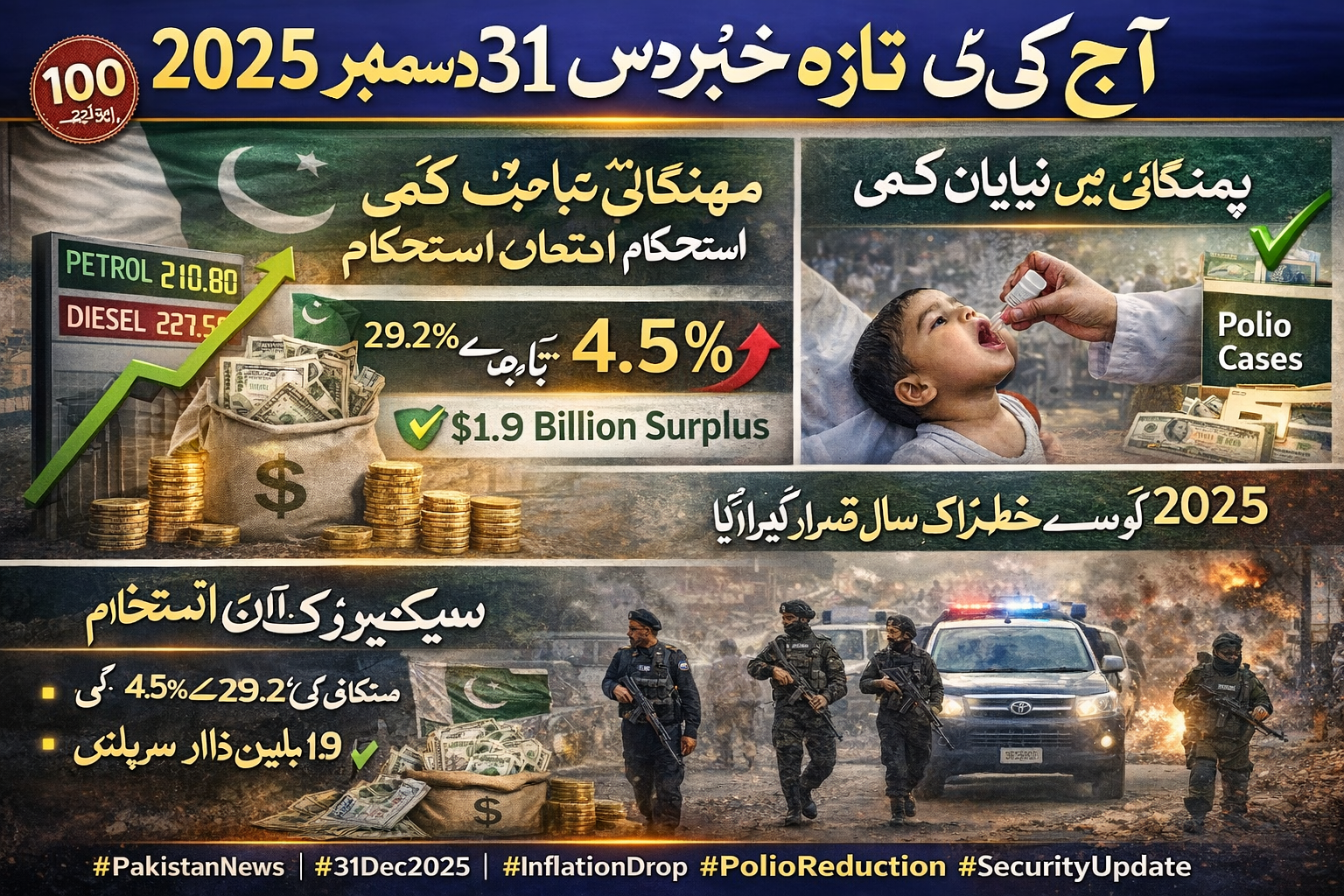 31 دسمبر 2025 مہنگائی میں کمی، پولیو میں کمی، سیکیورٹی صورتحال